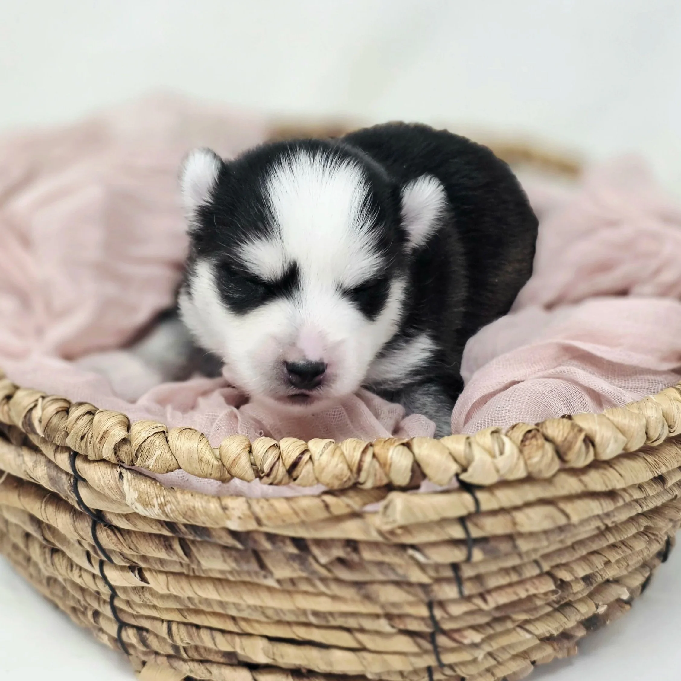 If we have a Pomsky puppy for sale that we think would be an excellent match, we will ask if you want to place a deposit to reserve the puppy during the interview. If there are no puppies available at the time, you can make a deposit to be placed on our waitlist for a future litter. About four weeks after a litter is born, we will get in touch with the members of our waitlist and allow them to reserve a puppy. Puppies must be paid in full by six weeks of age so we can make proper travel arrangements for delivery.